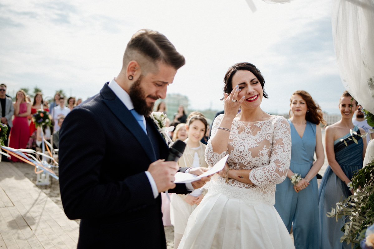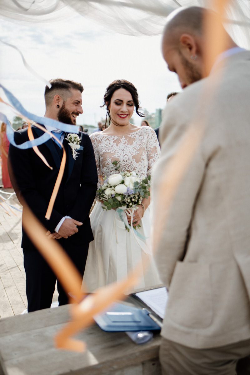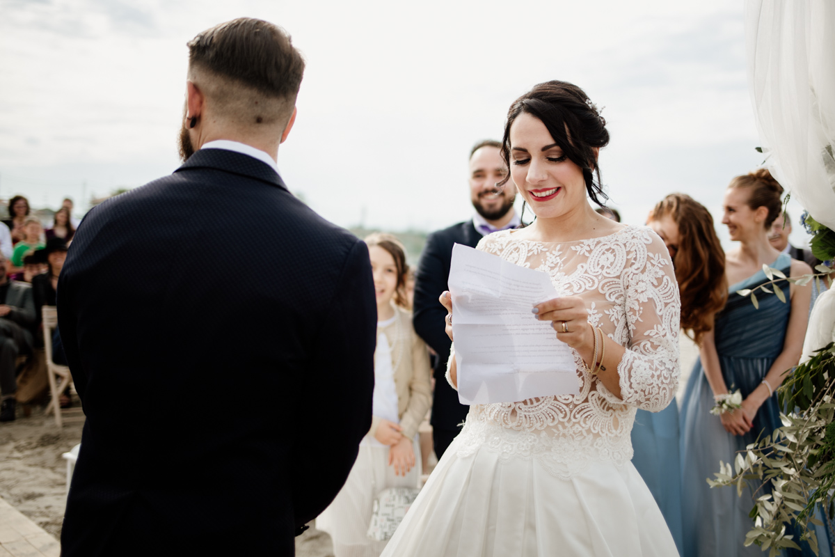 Ripensando in questi giorni alla primavera scorsa, ai servizi che, nel pieno del restyling del sito, non ho ancora caricato, ragiono sul fatto che i matrimoni al mare sono i miei preferiti. Spesso si ha l’occasione di lavorare qualche ora a piedi scalzi e l’aria di libertà che regala il mare è impareggiabile.